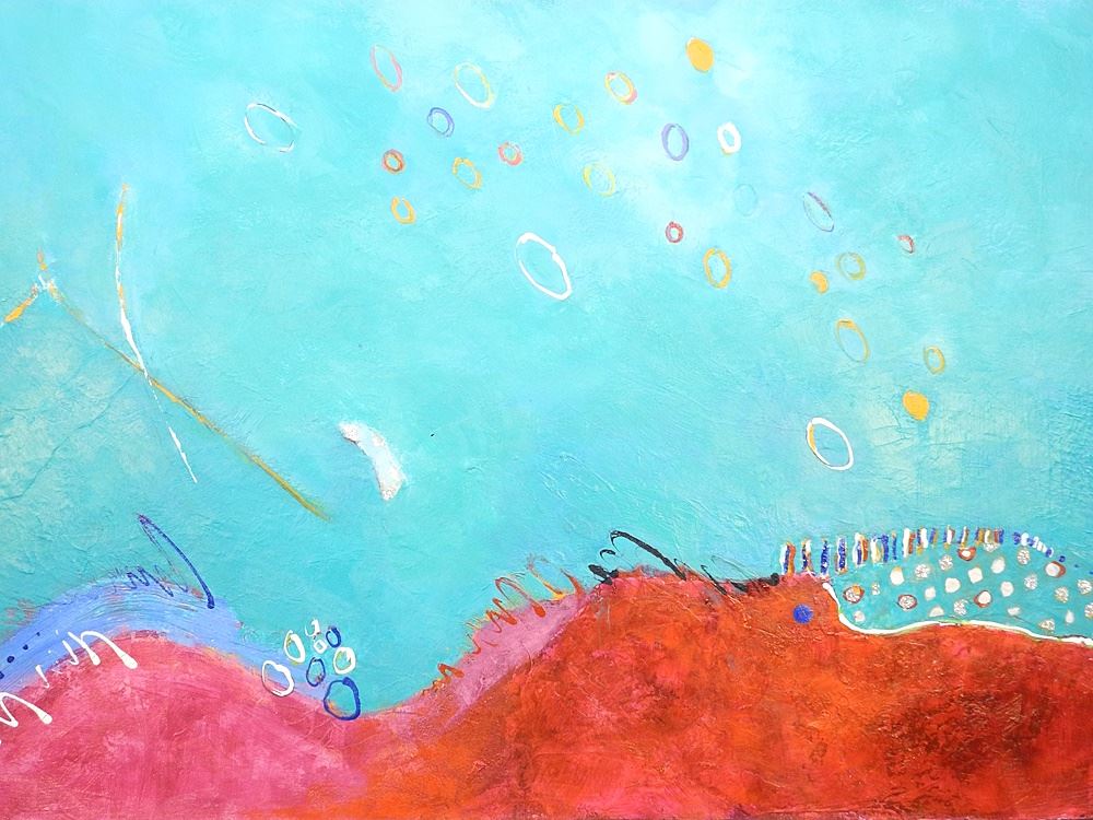 Acrylic on Canvas signed Susan J. Geddes (verso), 24 x 36", "Jumping Through Space".