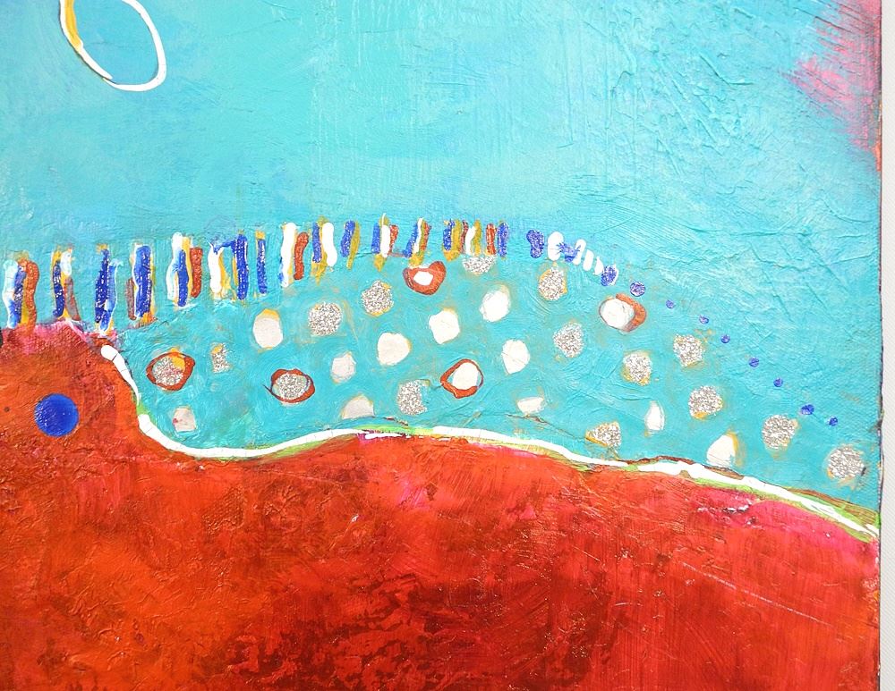 LOT 92 Acrylic on Canvas signed Susan J. Geddes (verso), 24 x 36", "Jumping Through Space". Estimate: $250 - $350 Auction Date: Tuesday, October 31 2023 at 4:00 PM
