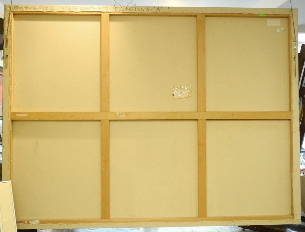 LOT 22 Acrylic on Canvas signed John Howlin verso, 67 x 90", "Ellington's A". Estimate: $600 - $900 Sold For: $550 Auction Date: Tuesday, October 31 2023 at 4:00 PM