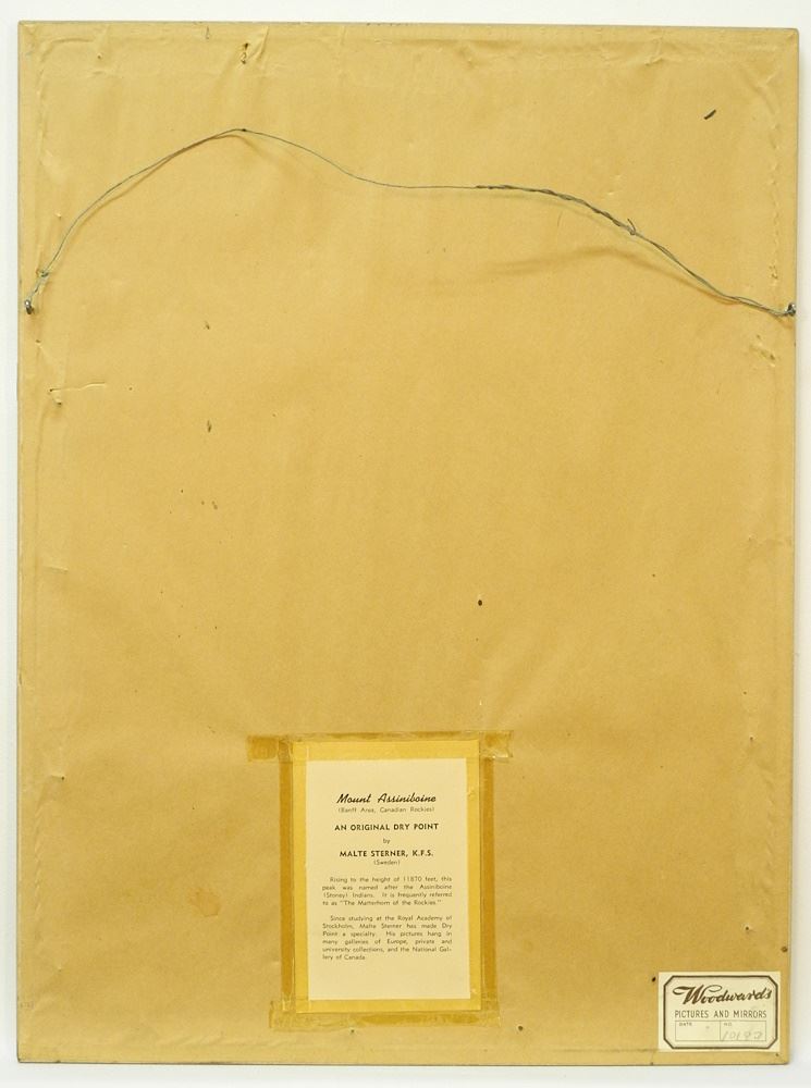 LOT 144 Two Drypoint Etchings Signed Malte Sterner, 9 1/8" x 10 1/4" largest, "Capilano & Mt. Assiniboin Estimate: $60 - $100 Sold For: $100 Auction Date: Tuesday, October 31 2023 at 4:00 PM