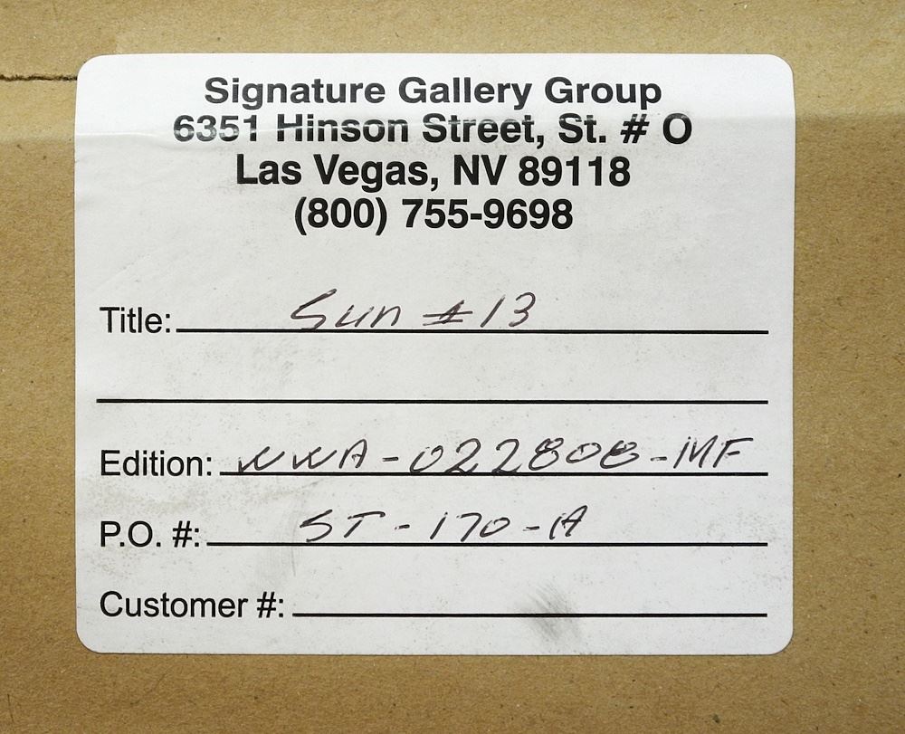 LOT 137 Acrylic on Paper signed W Robert Wyland, 15" x 22 1/2", "Sun #13". Estimate: $250 - $500 Sold For: $225 Auction Date: Tuesday, November 28 2023 at 4:00 PM
