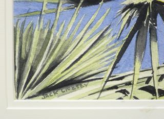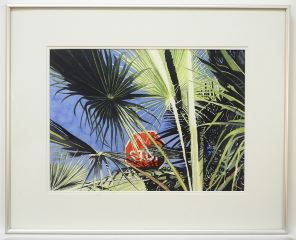 LOT 101 Watercolour signed Jack Livesey, 10 5/8 x 14 1/2", "Stop Peeking Through Palms". Estimate: $100 - $200 Auction Date: Tuesday, November 28 2023 at 4:00 PM