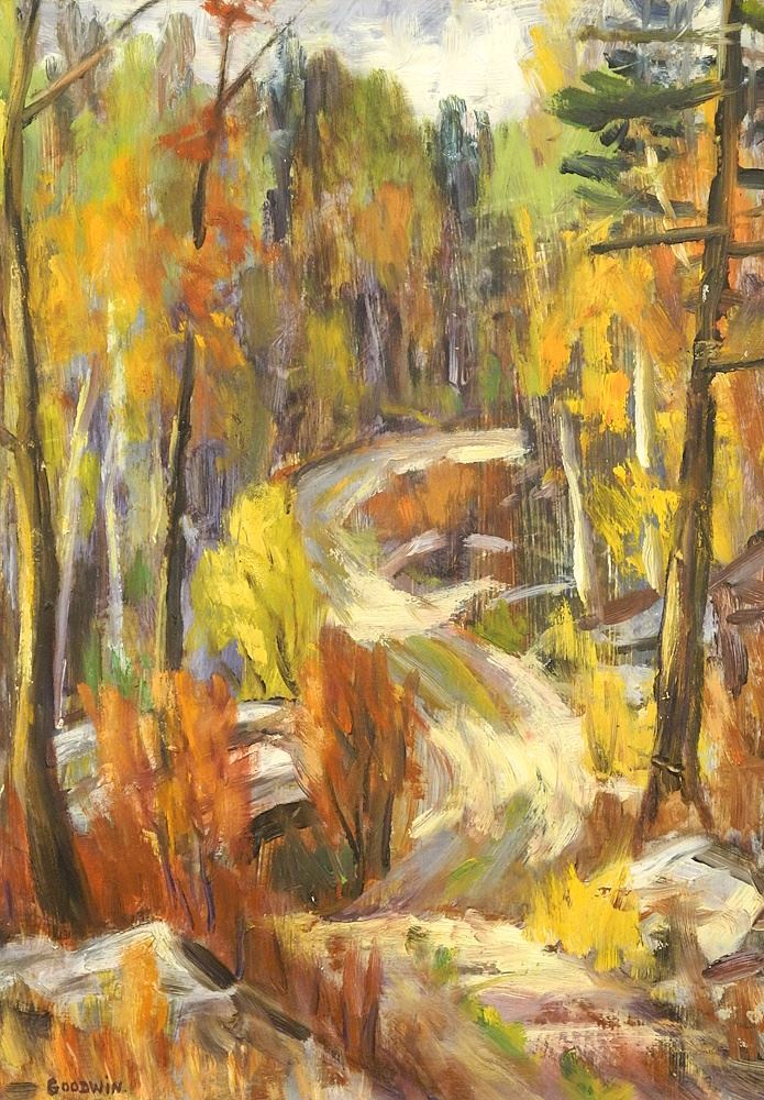 Oil on Board signed (Betty) Goodwin, 17 1/4 x 13 1/8", Untitled Autumn Landscape.