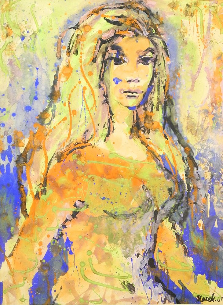 Mixed Media on Paper signed Marek (Zulawski), 24 1/4 x 18", "Portrait of a Woman".