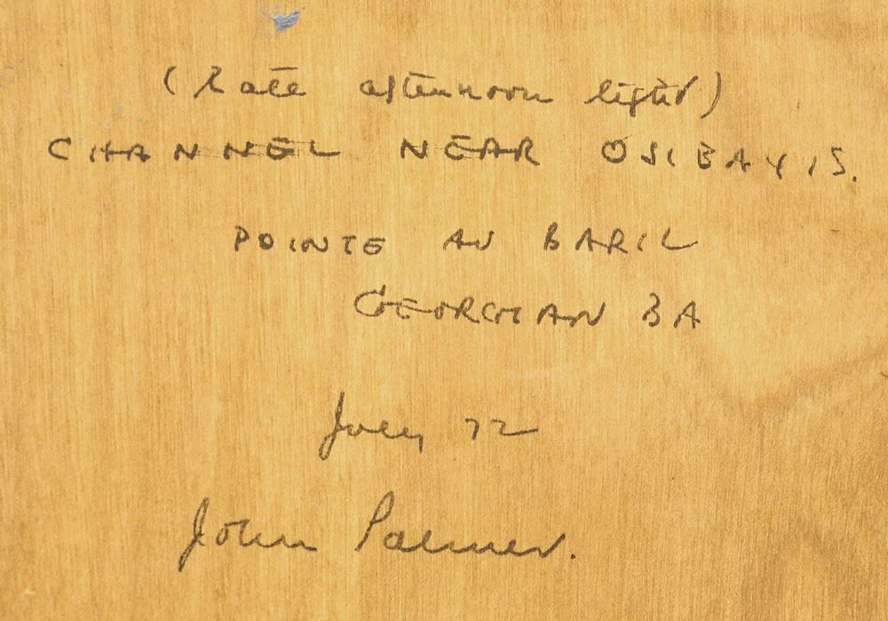 Oil on Board signed John Palmer, 9 7/8" x 11 7/8", "Late Autumn Light Pointe au Baril".