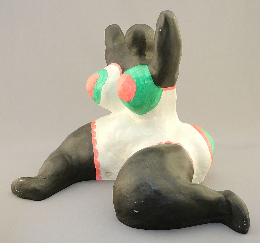 LOT 18 Polyester Figure impressed Niki de Saint Phalle, 10 1/8 x 13 1/2 x 12", "Femme Assise - Nana", #46 Estimate: $7,000 - $9,000 Auction Date: Tuesday, March 05 2024 at 4:00 PM