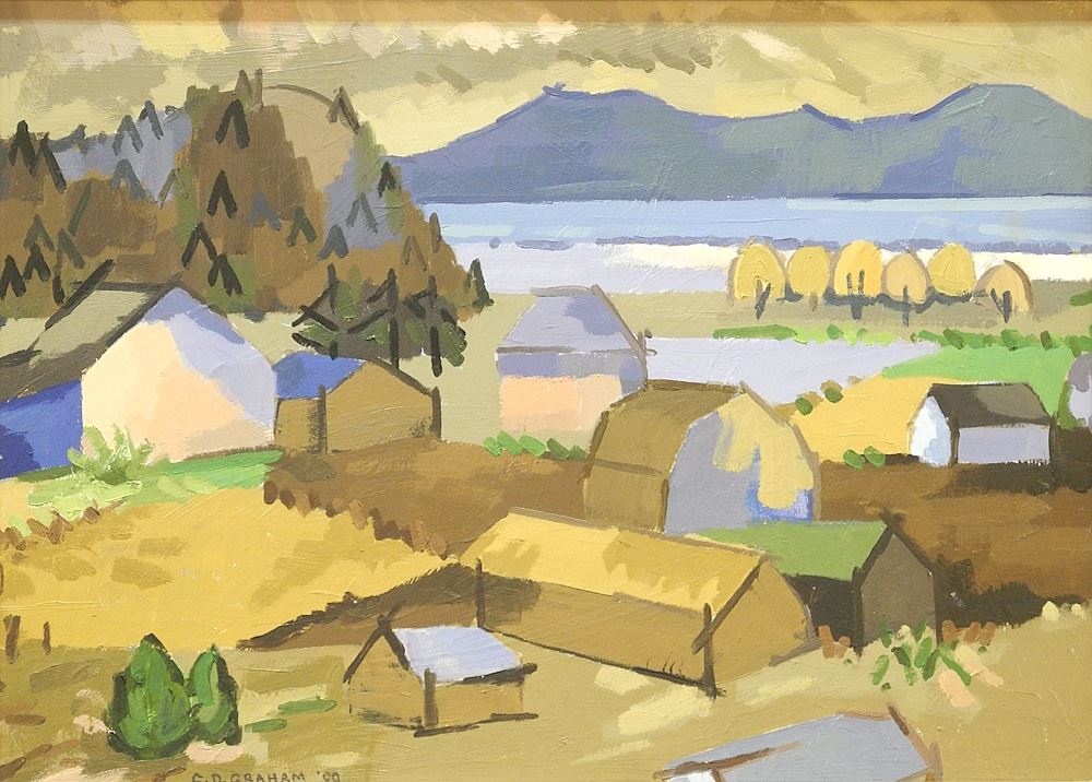 LOT 133 Oil on Board signed C. (Colin) D Graham, 12 1/8" x 17 3/8", "Coastal Farm". Estimate: $300 - $400 Sold For: $750 Auction Date: Tuesday, March 05 2024 at 4:00 PM