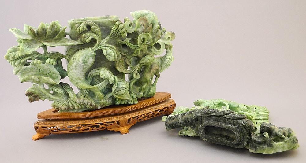 LOT 91 Chinese Green Hardstone Carving on Stand, 12"H. Estimate: $500 - $800 Auction Date: Tuesday, March 05 2024 at 4:00 PM
