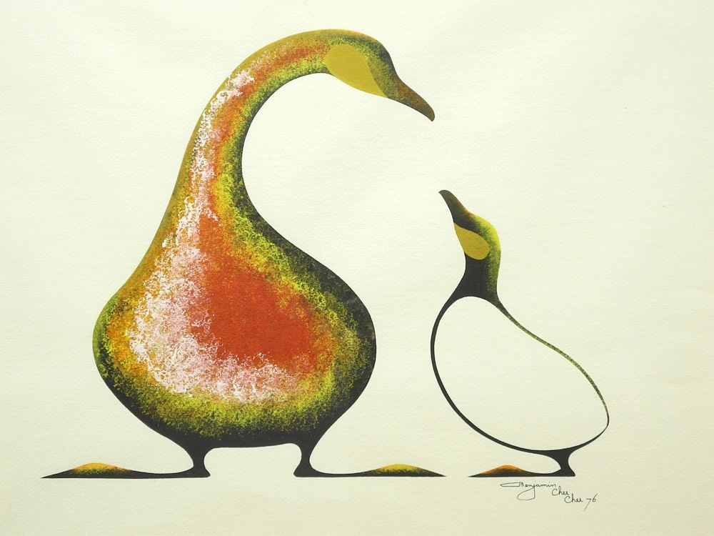 Acrylic on Paper signed Benjamin Chee Chee '76, 19 1/2" x 25 1/2", "Mother & Child".