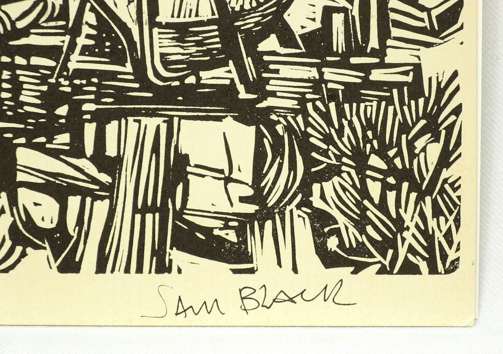 Woodblock Print signed Sam Black, 6 5/8" x 8 1/4", "Marine Repair".