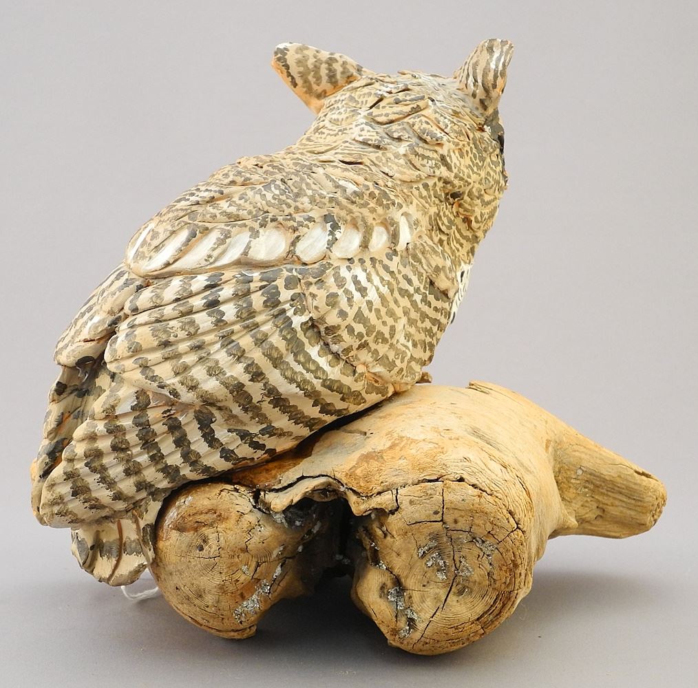 2 Pottery Owl Sculptures Monogrammed EL (Edith Landsdowne), 14" & 8 1/2"W