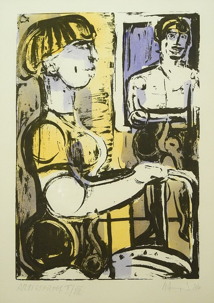 LOT 57 Acrylic on Paper signed H. Siebner 84', 20" x 14 1/4", "Two Figures II/ VIII". Estimate: $250 - $400 Sold For: $200 Auction Date: Tuesday, May 07 2024 at 4:00 PM