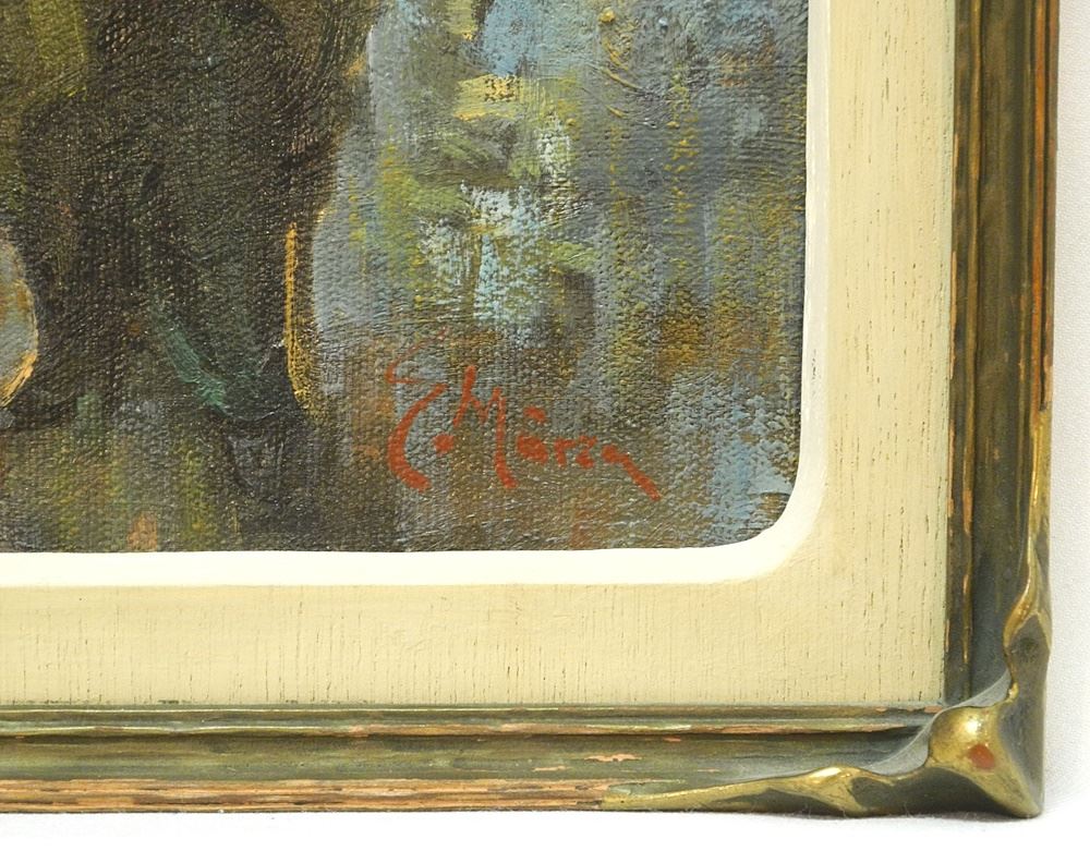 Oil on Canvas Mounted on Board signed E. (Ernest) Marza, 10 1/4" x 7", "Woman in Fancy Hat".