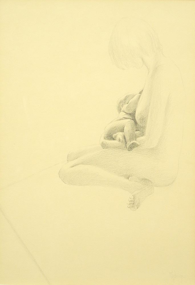 LOT 55 Drawing signed Myfanwy (Pavelic), 11 1/2" x 8", "Young Mother", 1974. Estimate: $100 - $150 Sold For: $160 Auction Date: Tuesday, May 07 2024 at 4:00 PM