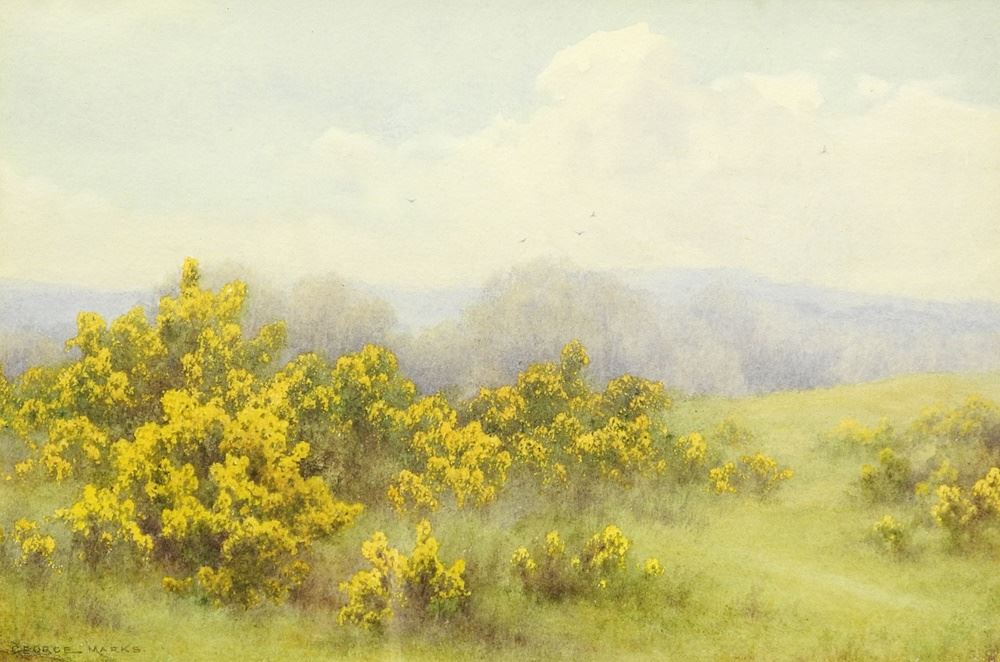 LOT 138 Watercolour verso signed George Marks, C.1909, 7 1/2" x 5 1/8" "Broom Landscape". Estimate: $100 - $150 Sold For: $140 Auction Date: Tuesday, May 07 2024 at 4:00 PM