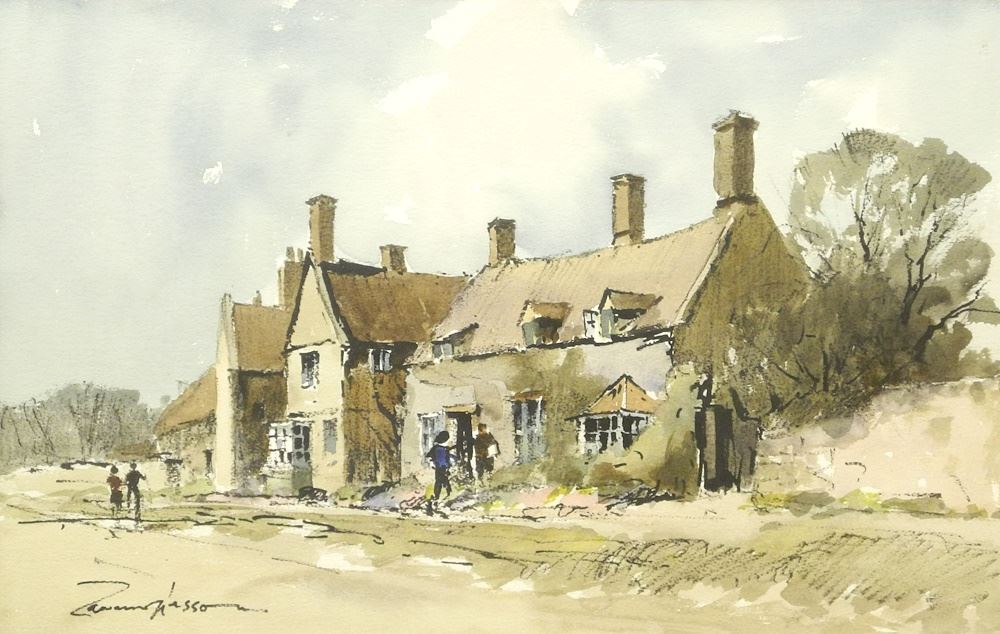 LOT 78 Watercolour signed Wesson, 12 1/2" x 19 1/2", "Cottages at Broadway". Estimate: $100 - $150 Auction Date: Tuesday, May 07 2024 at 4:00 PM