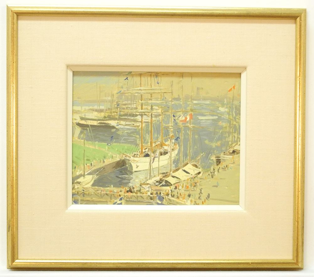 LOT 19 Oil on Board signed Verso Arto Yuzbasiyan, 8" x 10", "Quebec with Swedish Ship". Estimate: $250 - $500 Sold For: $200 Auction Date: Tuesday, May 07 2024 at 4:00 PM