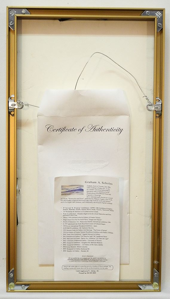 Colour Woodblock Print signed G.A. (Graham) Scholes, 14 1/4" x 6 3/8", with Certificate.