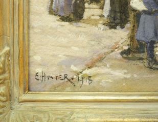 Watercolour signed E. Hunter 1918, 6 1/2" x 10", "Soldiers in Paris".