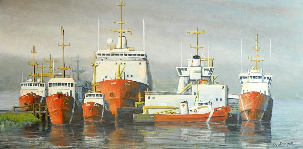 Acrylic on Board signed Chris Broadbent, 24" x 48", "Canadian Coast Guard Vessels".