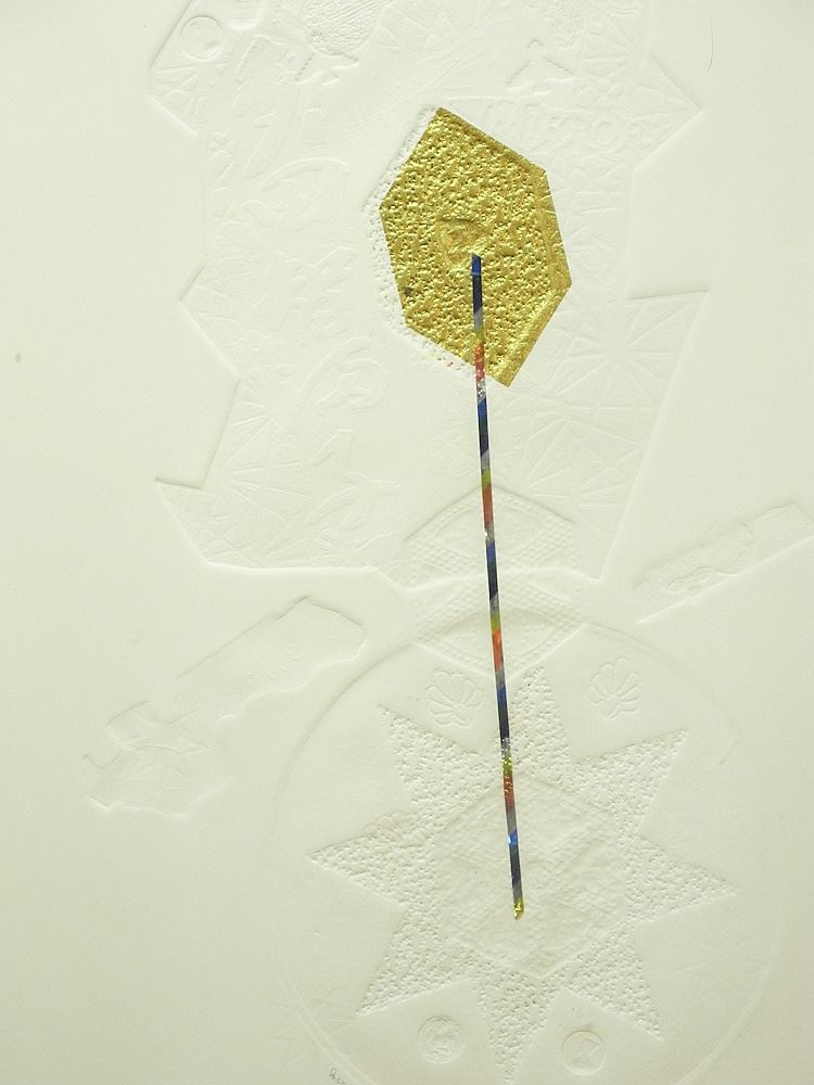 Mixed Media Print signed Pat Martin Bates, 30" x 22 1/4", "Escape of the Golden Glass".