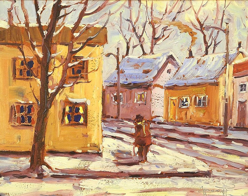 Oil on Board signed (Rod) Charlesworth, 16" x 20", "HenryVille (Street Scene)".