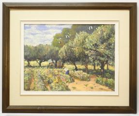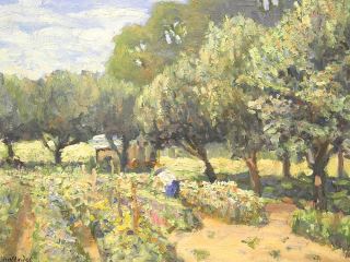 Oil on Canvas signed (Andy) Wooldridge, 12" x 16", "Tending the Garden".