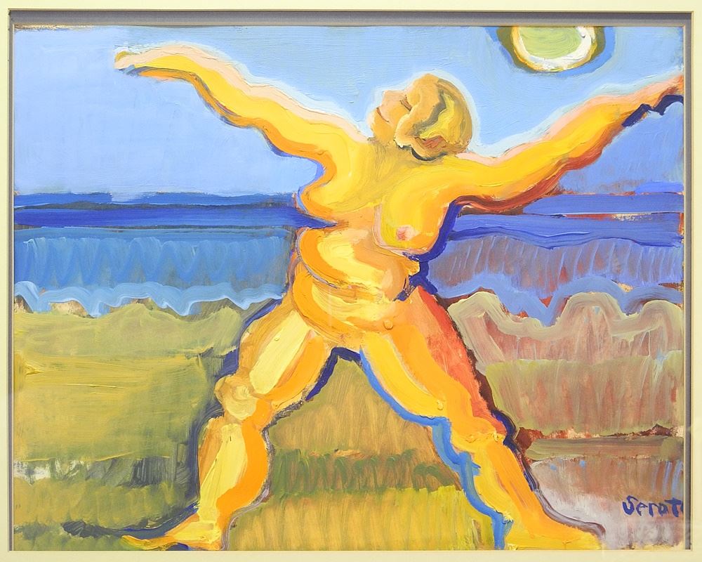 Acrylic on Paper signed (Phyllis) Serota, 19 1/2" x 24 3/4", "Woman & Sun".