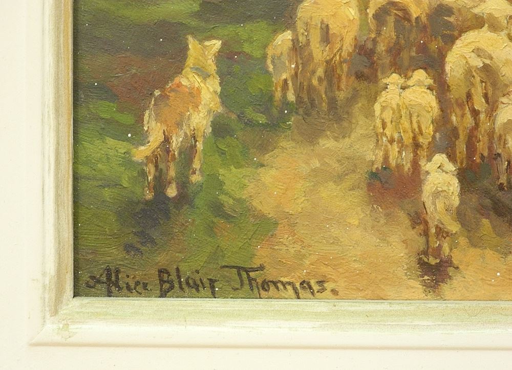 LOT 54 Oil on Board signed Alice Blair Thomas, 6 5/8" x 9 1/2", "Shepherdess with Flock". Estimate: $100 - $200 Sold For: $275 Auction Date: Tuesday, May 07 2024 at 4:00 PM