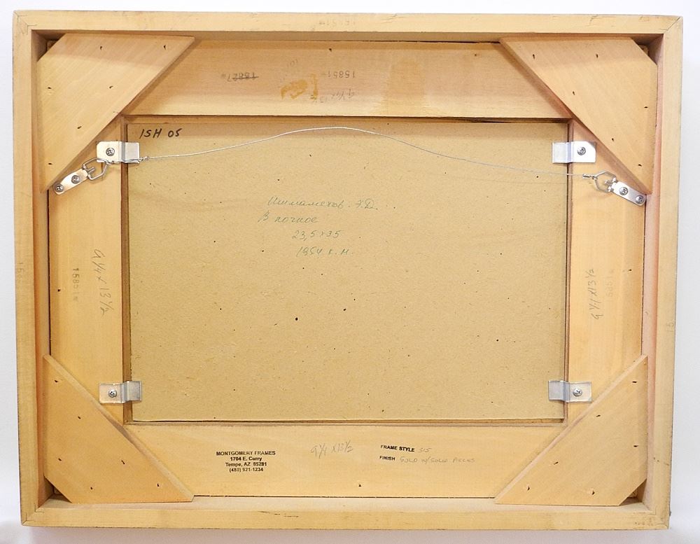 Oil on Board Attributed to Enver Ishametov, 8 5/8" x 12 3/4", "Figures on Horseback".