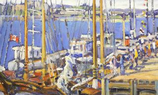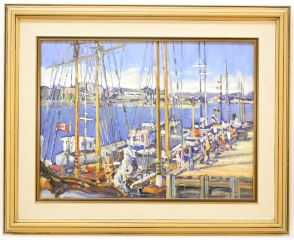 LOT 56 Oil on Canvas Attributed to Andy Wooldridge, 12" x 16", "Wooden Boat Festival, Victoria". Estimate: $150 - $300 Sold For: $400 Auction Date: Tuesday, May 07 2024 at 4:00 PM