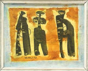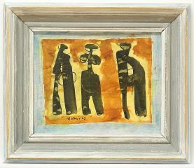Mixed Media signed H. (Herbert) Siebner '63, 7 5/8" x 9 1/2", "Three Lovers".