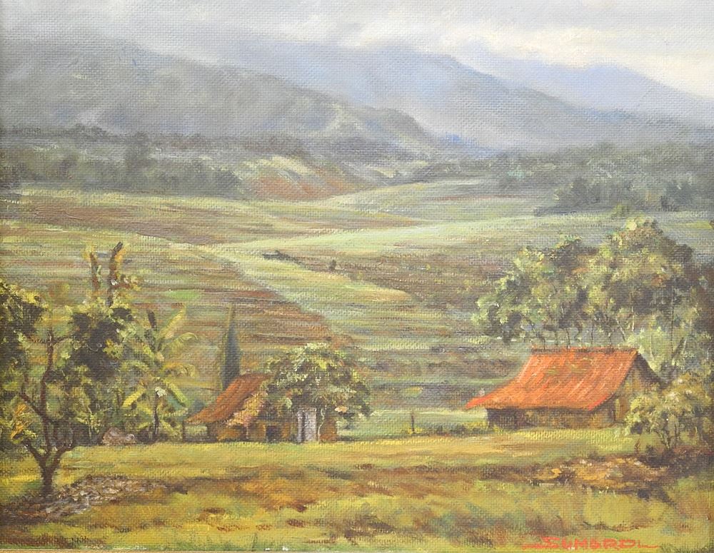 Oil on Board signed Sumardi, 15" x 18 7/8", "Javanese Landscape".