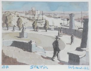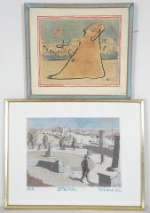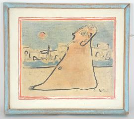 Mixed Media signed H. (Herbert) Siebner, 8 1/2" x 9 3/4", "Gentleman in Waiting" (includes pri