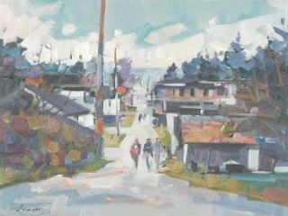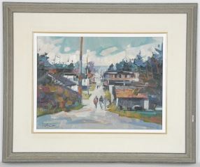 LOT 93 Oil on Masonite signed J. (Jim) Vest , 12" x 16", "Chemainus Impression" H1. Estimate: $250 - $350 Sold For: $500 Auction Date: Tuesday, October 29 2024 at 4:00 PM