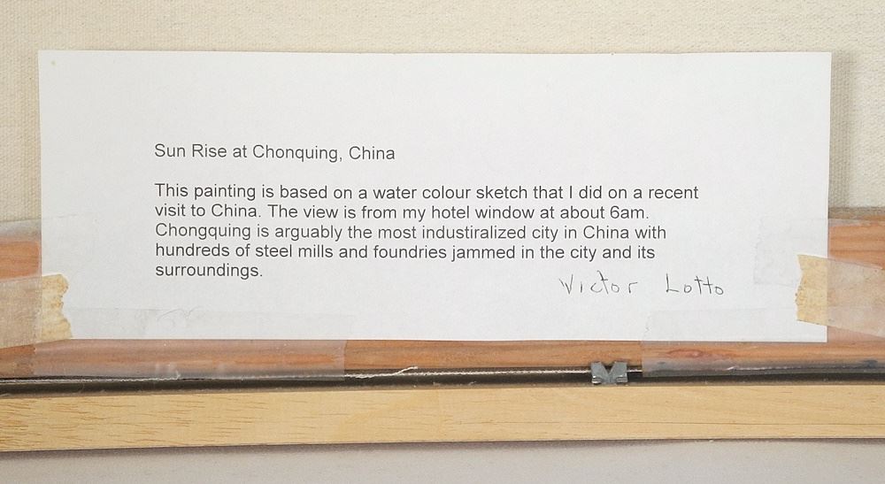 LOT 244 Mixed Media on Canvas signed Victor Lotto, 24" x 30", "Sunrise at Chonquing China". Estimate: $100 - $200 Sold For: $90 Auction Date: Tuesday, October 29 2024 at 4:00 PM