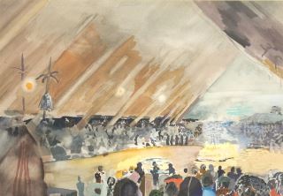 LOT 114 Watercolour signed Glenn E. Howarth, 14" x 20", "Potlatch in the Big House, Kuper Island 1980". Estimate: $100 - $200 Auction Date: Tuesday, October 29 2024 at 4:00 PM