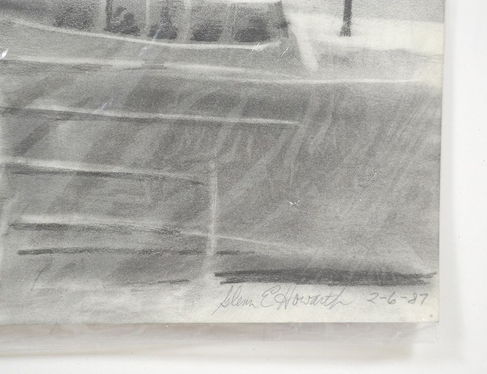 LOT 218 Graphite on Paper signed Glenn E Howarth, 2-6-87, 19 3/8" x 26 3/4", "Cityscape". Estimate: $50 - $100 Sold For: $45 Auction Date: Tuesday, October 29 2024 at 4:00 PM