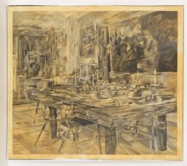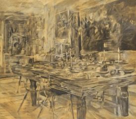 Graphite on Polystyrene signed Howarth, 35 3/4" x 41", "Still Life with Table Setting".
