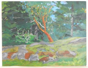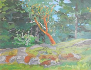 Oil on Board signed Howarth 85, 20 1/8" x 26 1/16", "Arbutus Tree".