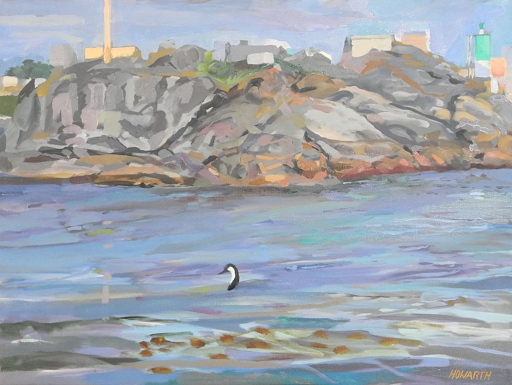 Oil on Canvas signed Howarth, 18" x 24", "Duck in Coastal Scene (H H14)".