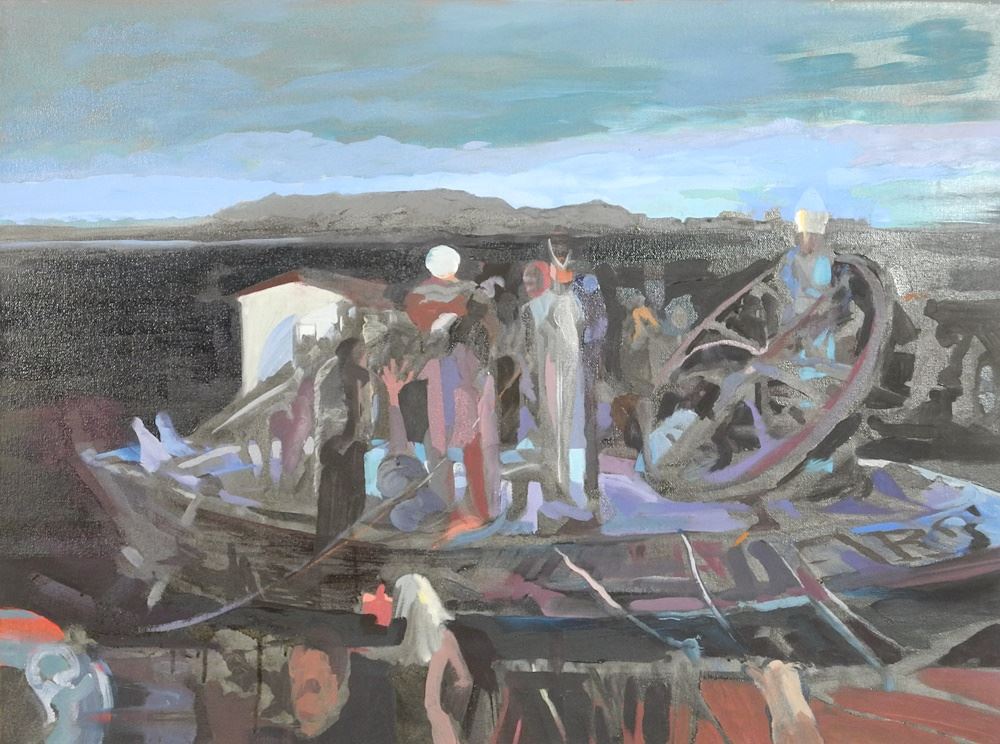 Oil on Canvas by Glenn Howarth, 18" x 24", "Boat Gathering".