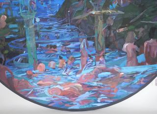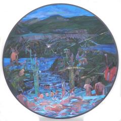 LOT 116 Oil on Canvas signed Howarth, 48" Diameter, "Waterpark". Estimate: $400 - $600 Auction Date: Tuesday, October 29 2024 at 4:00 PM