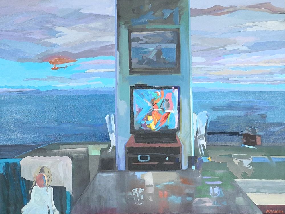 Oil on Canvas signed Howarth, 30" x 40", "TV Room Overlooking Bay".