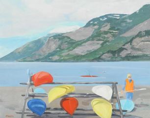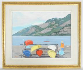 Oil on Canvas signed Howarth, 22 1/8" x 28 1/8", "Canoes 1".