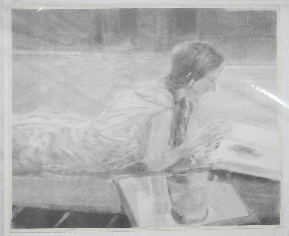 LOT 238 2 Graphite on Paper by Glenn Howarth , Largest 28 1/2" x 22 1/2", "Woman" & "Girl Reading". Estimate: $50 - $100 Auction Date: Tuesday, October 29 2024 at 4:00 PM