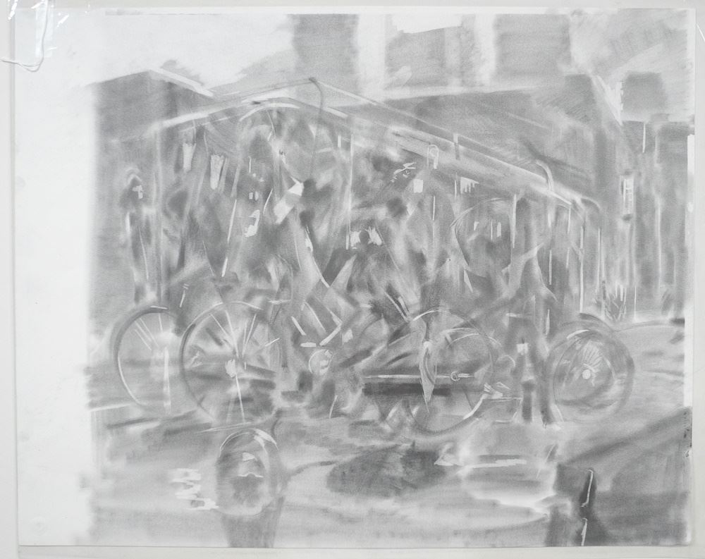 2 Graphite on Paper by G. Howarth, Largest 22 3/4" x 26 1/2", "Figures in Woods and Cyclists".