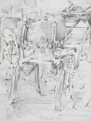 LOT 43 Graphite on Paper signed G.E. Howarth May'74, 12 1/2" x 9 5/8", "Still Life with Chairs". Estimate: $50 - $100 Sold For: $35 Auction Date: Tuesday, October 29 2024 at 4:00 PM