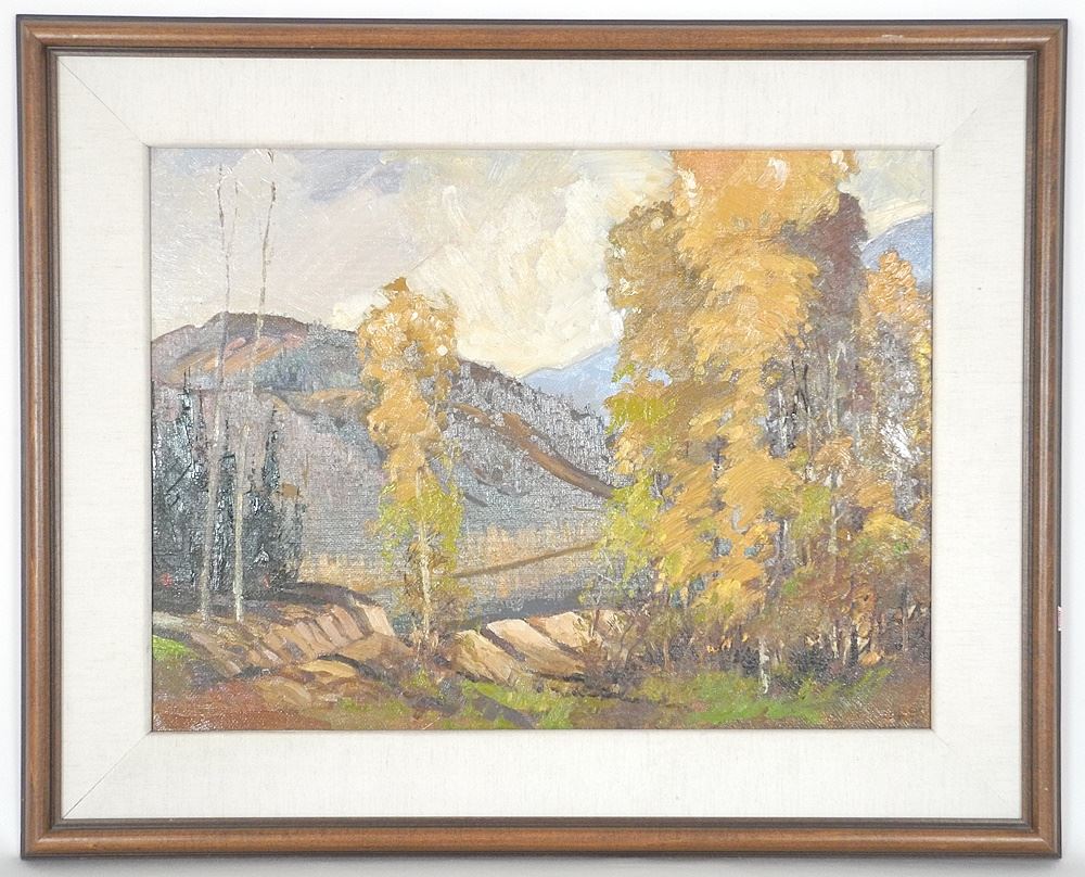 Oil on Board signed (John) Byrne, 18" x 24", "Autumn in Alberta".