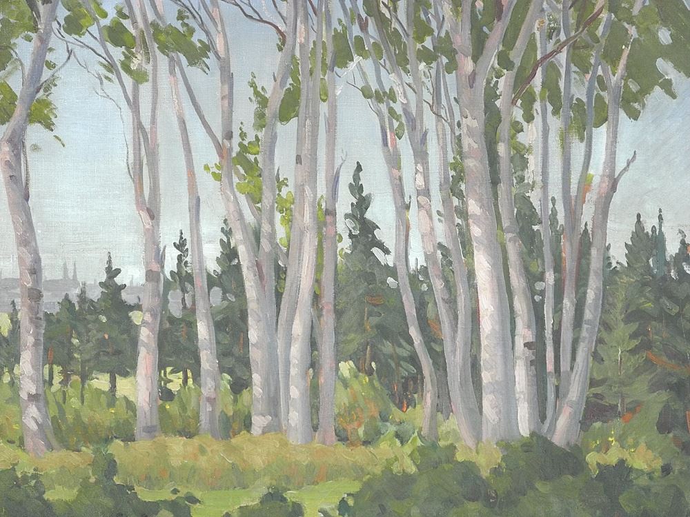 Oil on Canvas signed Jack Taylor Charlottetown PEI Verso, C.1938, 20" x 24", "Birch Grove, PEI"
